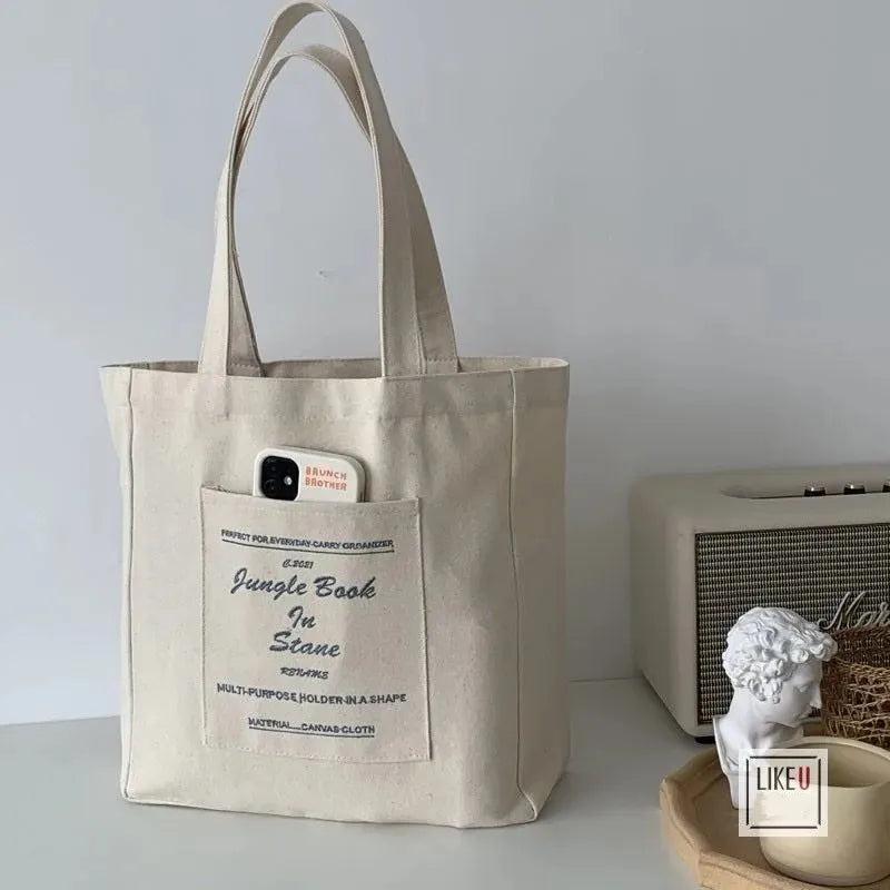 Jungle Book Print Canvas Shoulder Bag Large Capacity Tote Bag