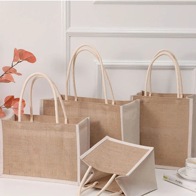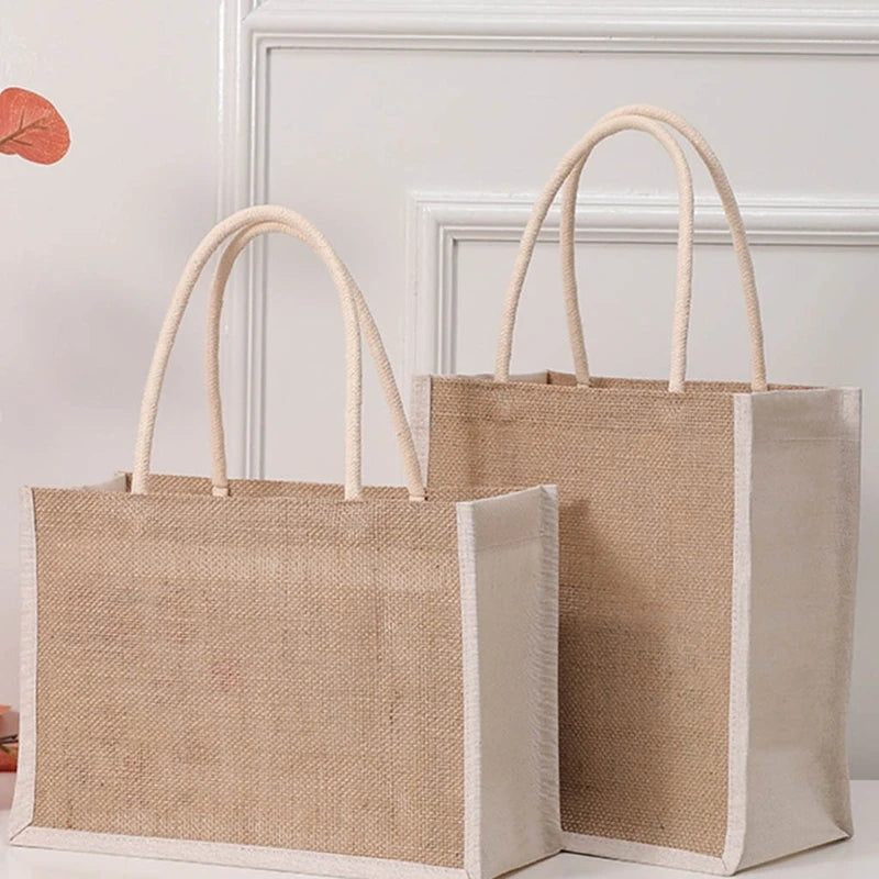 Jute Tote Bags Burlap Handbag Reusable Beach Shopping Grocery Bag