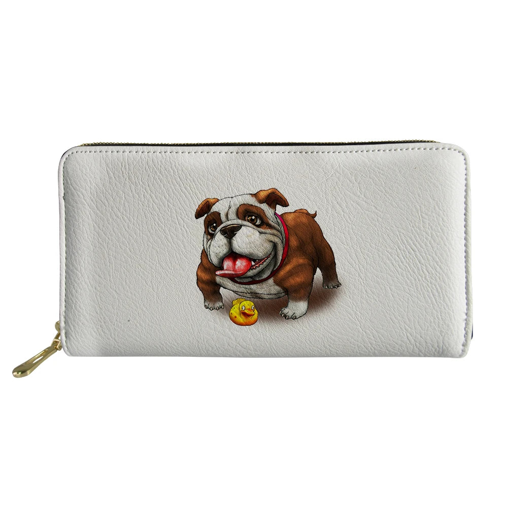 Kawaii Bulldog Pattern Long Wallet Zipper Purses Personalized Clutch Bag Gift