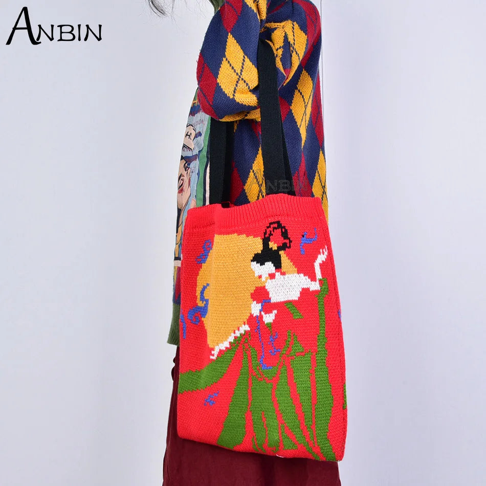 Knitting Shoulder Bags Women Casual Chinese Style Crochet Woolen Shopper Top-han
