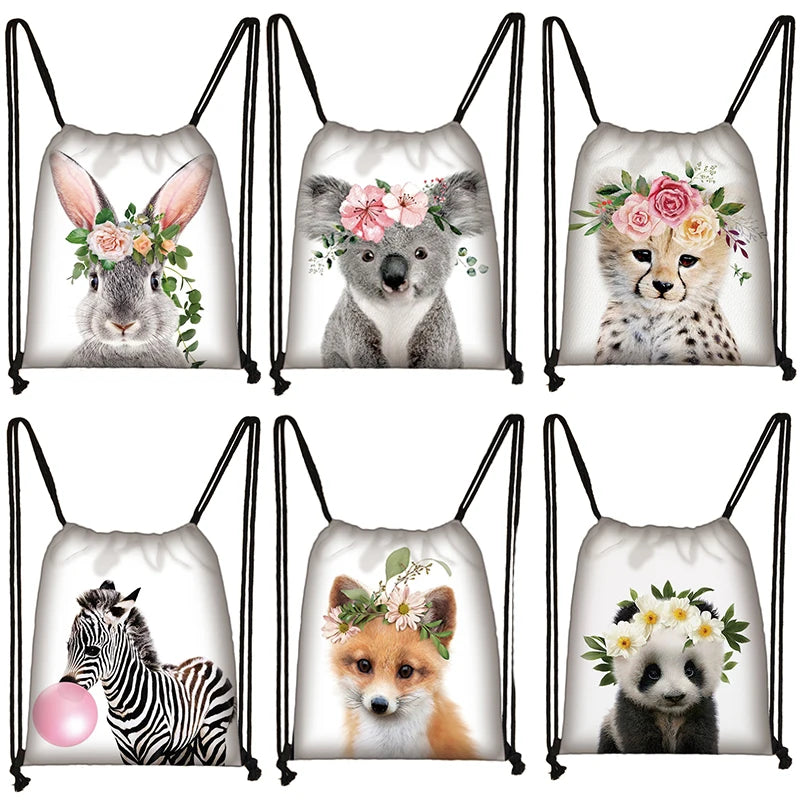 Koala Drawstring Bag Women Men Storage Panda/Zebra Travel Backpack