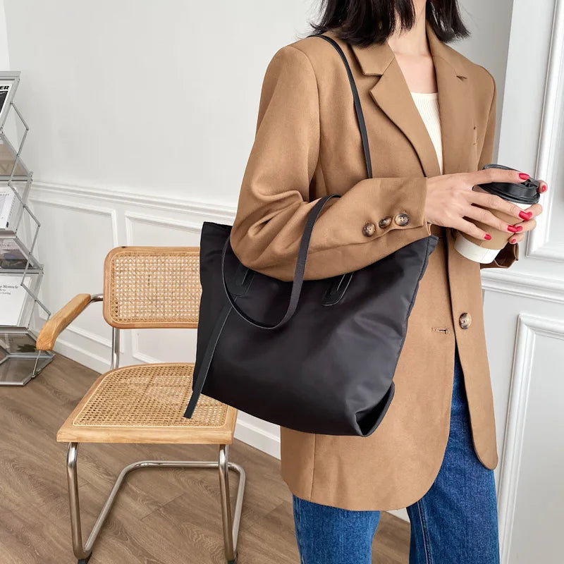 This shoulder bag combines Korean and Japanese styles to offer a large-capacity and versatile tote for women. Perfect for shopping or travel.