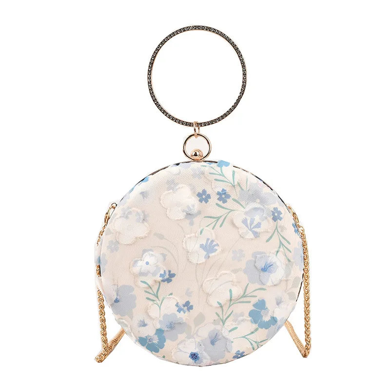 Lace Flower Ring Handbag Round Crossbody Clutch Wedding Evening Bag