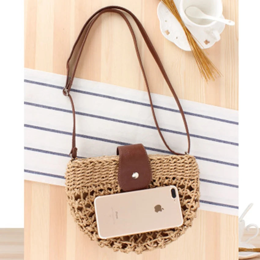 This sweet lady hand-woven bag features a hollow round design, perfect for a trendy and chic look. Made of high-quality straw, it's ideal for the beach or casual outings.