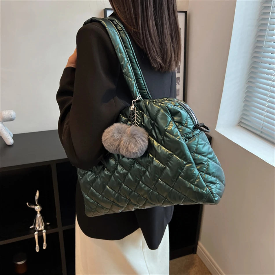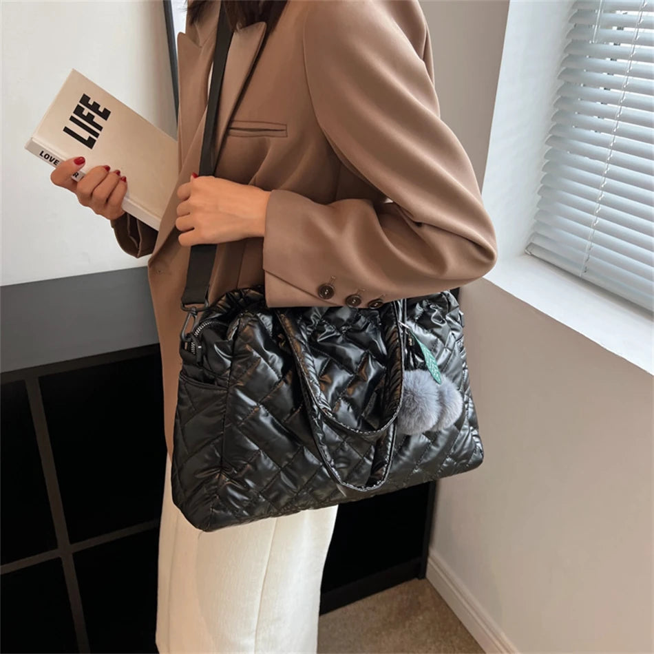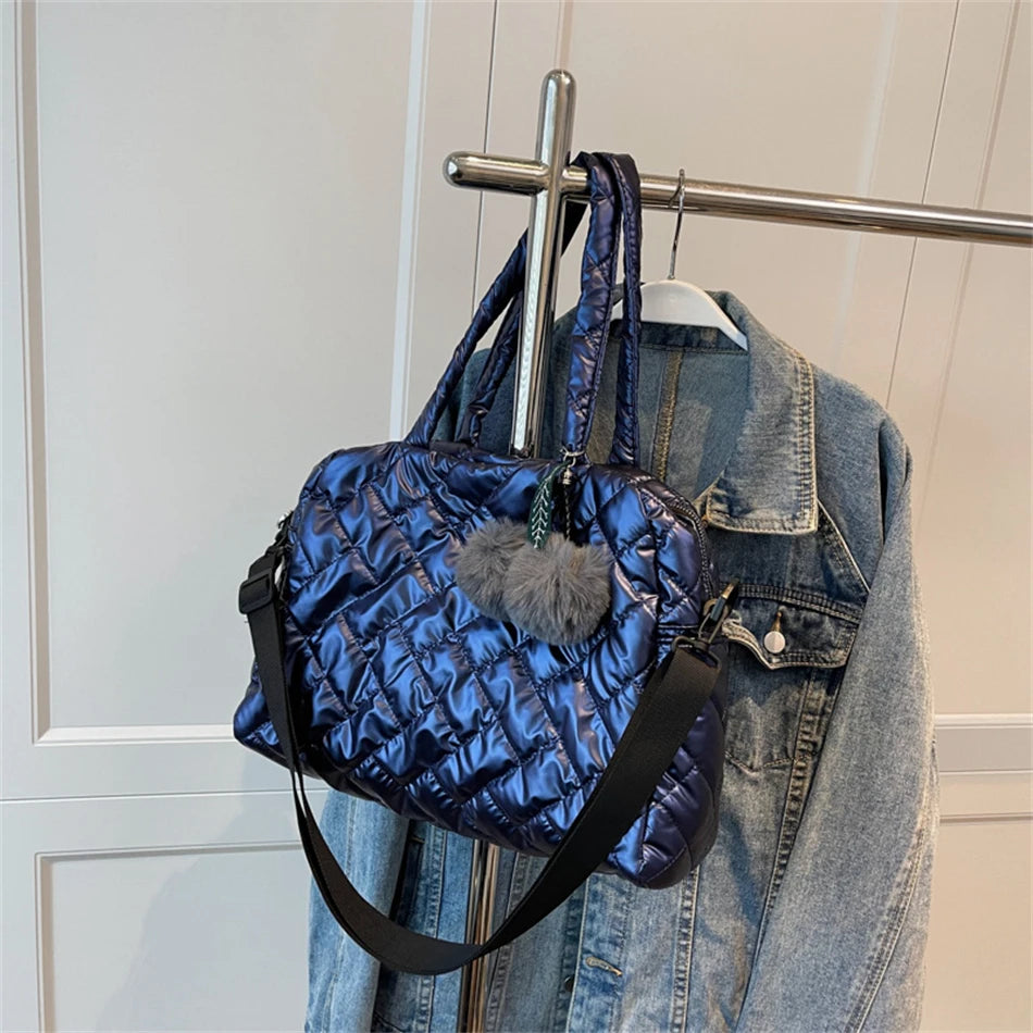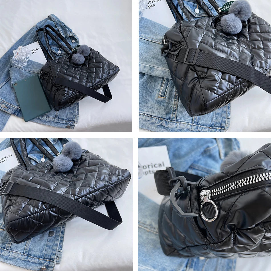 Lady Padded Space Totes Waterproof Down Fabric Cotton Shoulder Crossbody Bags