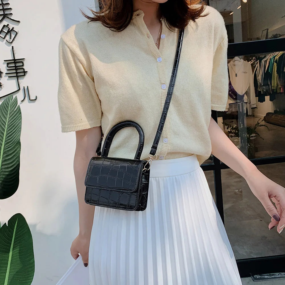 Lady Stone Pattern Mini Shoulder Handbag - Casual Tote Messenger Bag