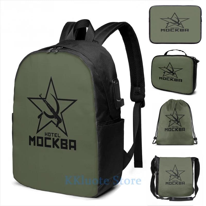 Lagoon Hotel Moscow USB Charge Backpack School Travel Laptop Bag