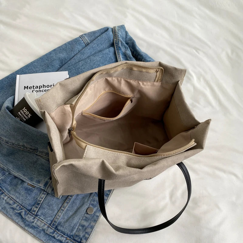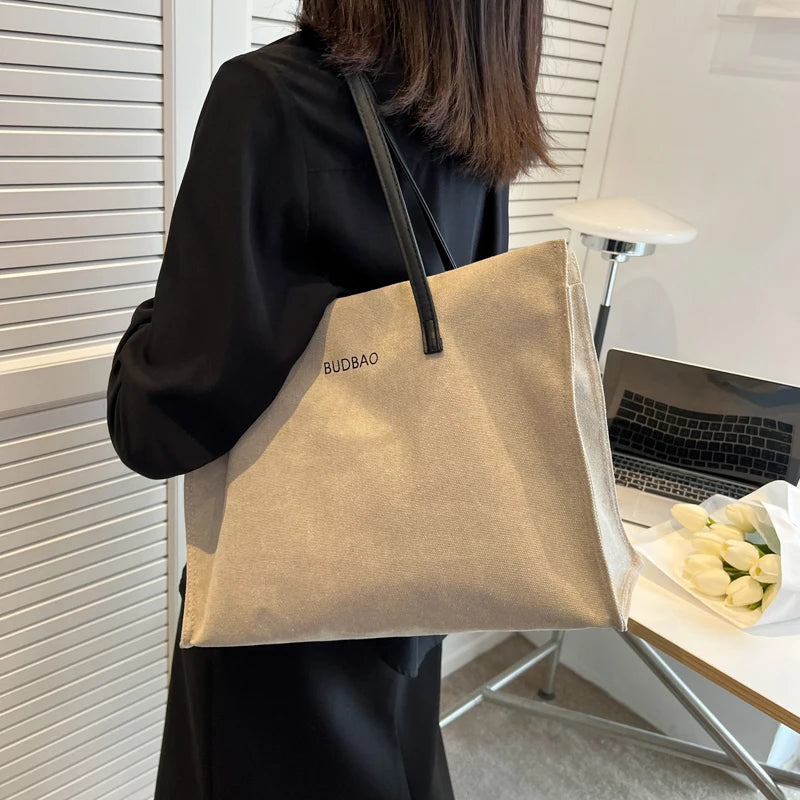 Large Canvas Tote Bag Women Shopping Shoulder Bag Solid Handle Reusable Tote