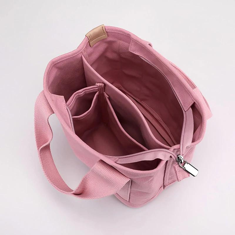 Large Canvas Tote Shoulder Bag - Multi-Pocket Handbag