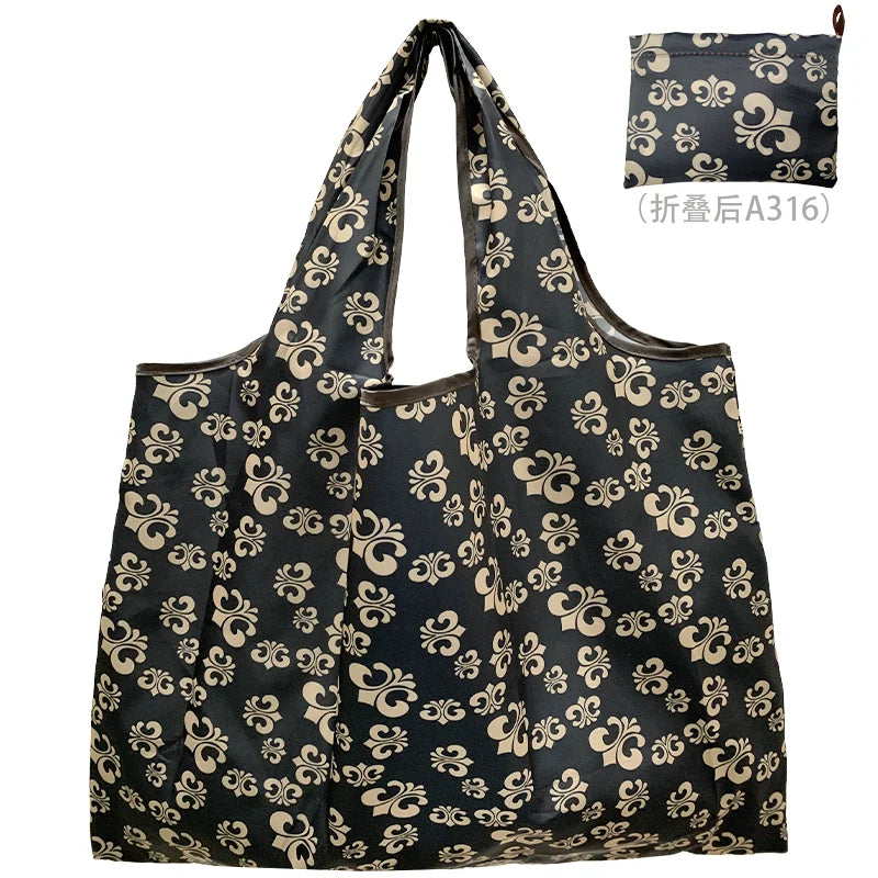 This reusable shopping bag features a 20L capacity, nice printing design, and eco-friendly materials, making it perfect for grocery shopping or daily use.