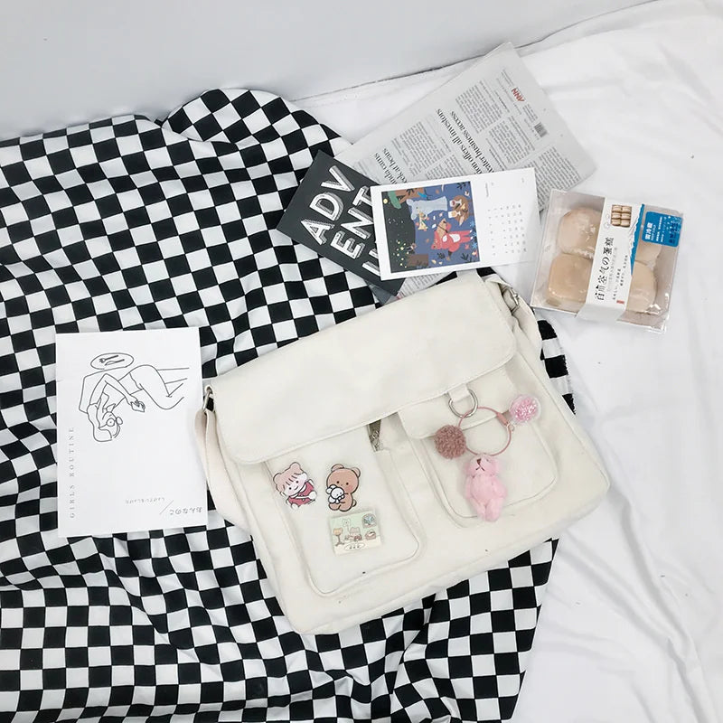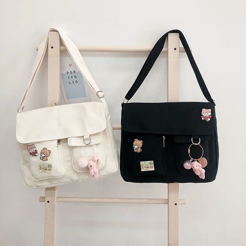 • Spacious canvas shoulder bag suitable for carrying books, laptops, and more
