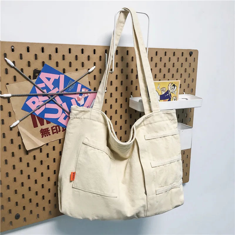 Large Capacity Canvas Shoulder Bag Soft Denim Travel Bag for Women