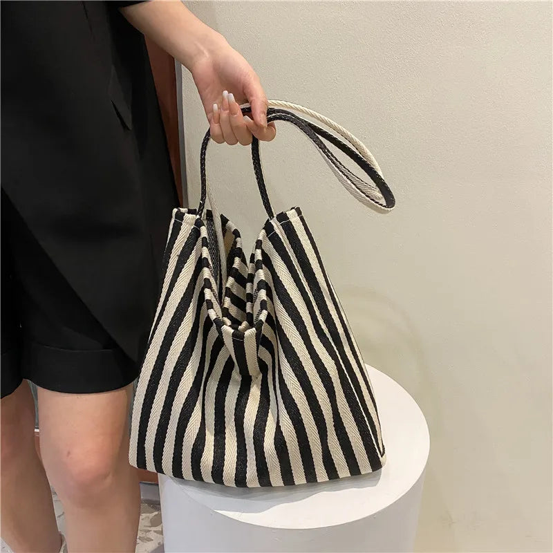 Large Capacity Canvas Shoulder Bag Striped Totes Handbag
