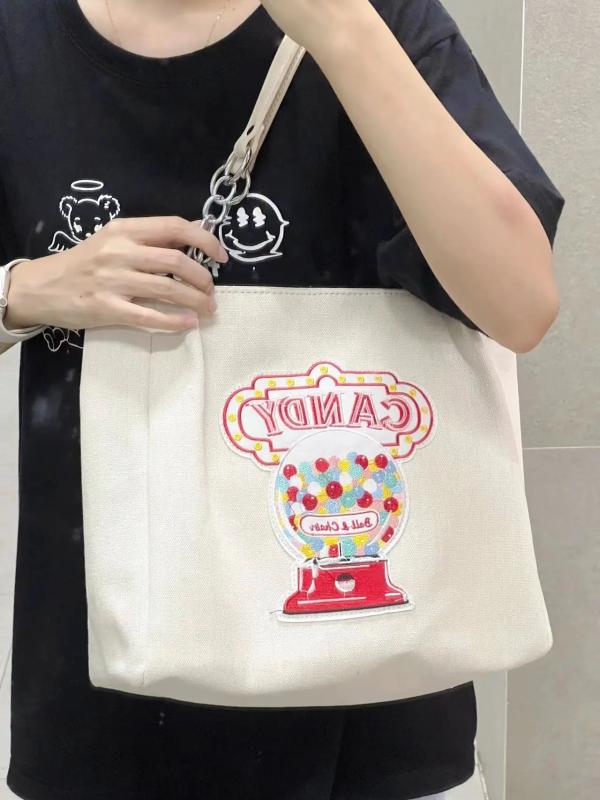 Large Capacity Canvas Tote Bag Embroidery Shoulder Bag