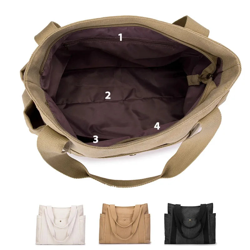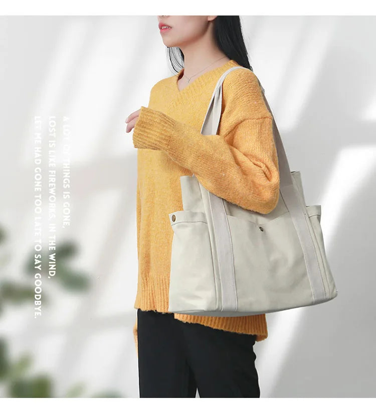 Stay stylish and organized with this versatile canvas tote bag, perfect for students and ladies. Made from durable canvas fabric.
