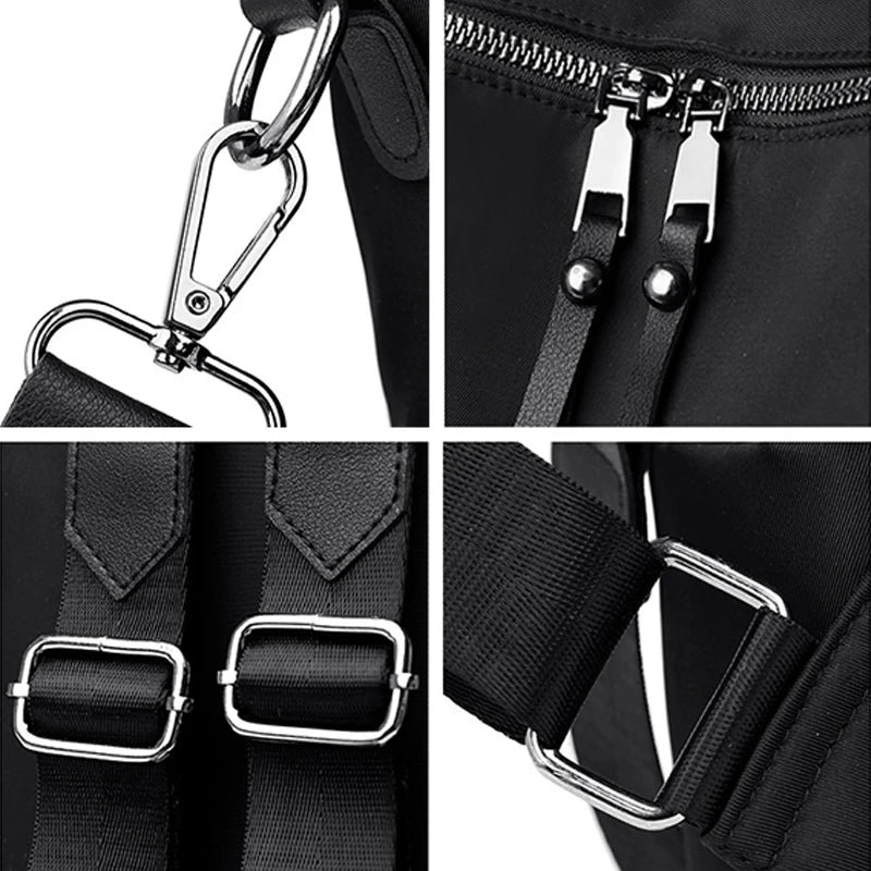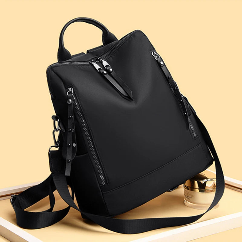 This multifunctional backpack is made of durable Oxford material, perfect for students and outdoor travel. It features dual zippers for easy access and organization.