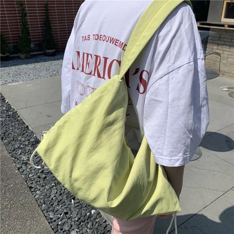 Large Capacity Nylon Drawcord Shopping Bag Underarm Bag