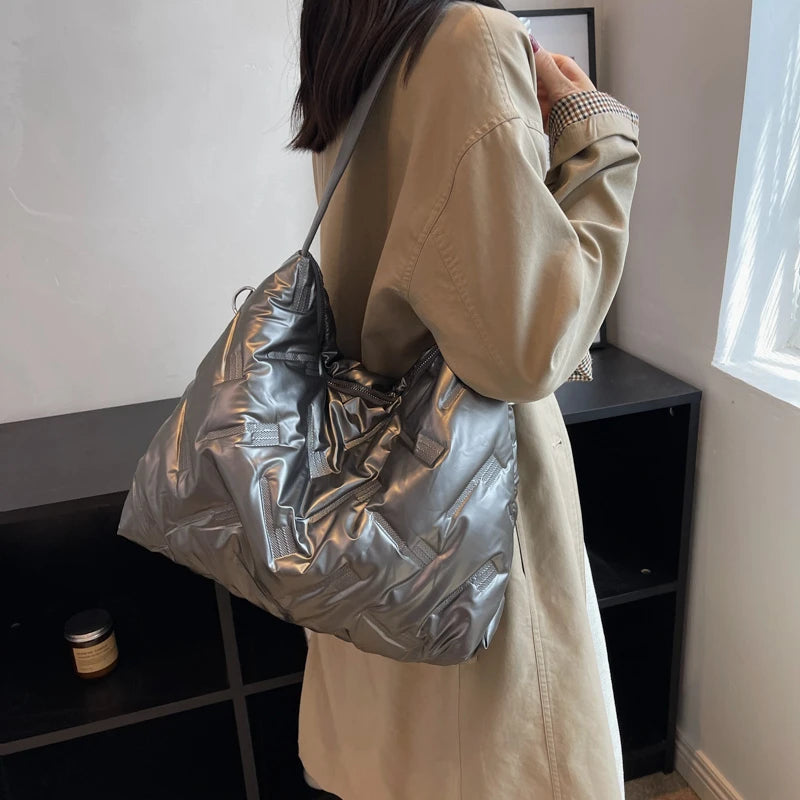 Large Capacity Padded Crossbody Bag for Women Winter Handbag Lady Purse