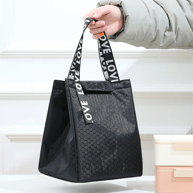 Stay stylish and organized with this large capacity lunch box thermal bag. Keep your meals fresh and cool while on-the-go. Perfect for women.