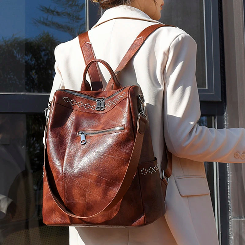This stylish backpack is made of high-quality PU leather, perfect for travel, school, or daily use. It offers a spacious interior to store all your essentials.