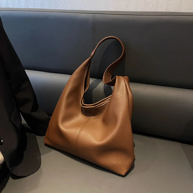 Large Capacity PU Leather Tote Bag Retro Style Women Shoulder Bag