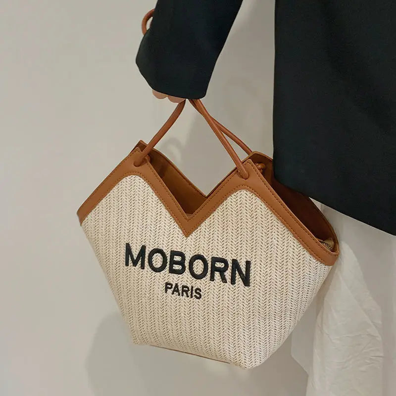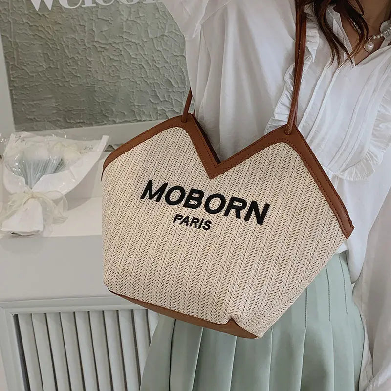Stay stylish and organized with this women's large capacity shoulder bag made from durable straw material. Perfect for carrying all your essentials in one chic tote.