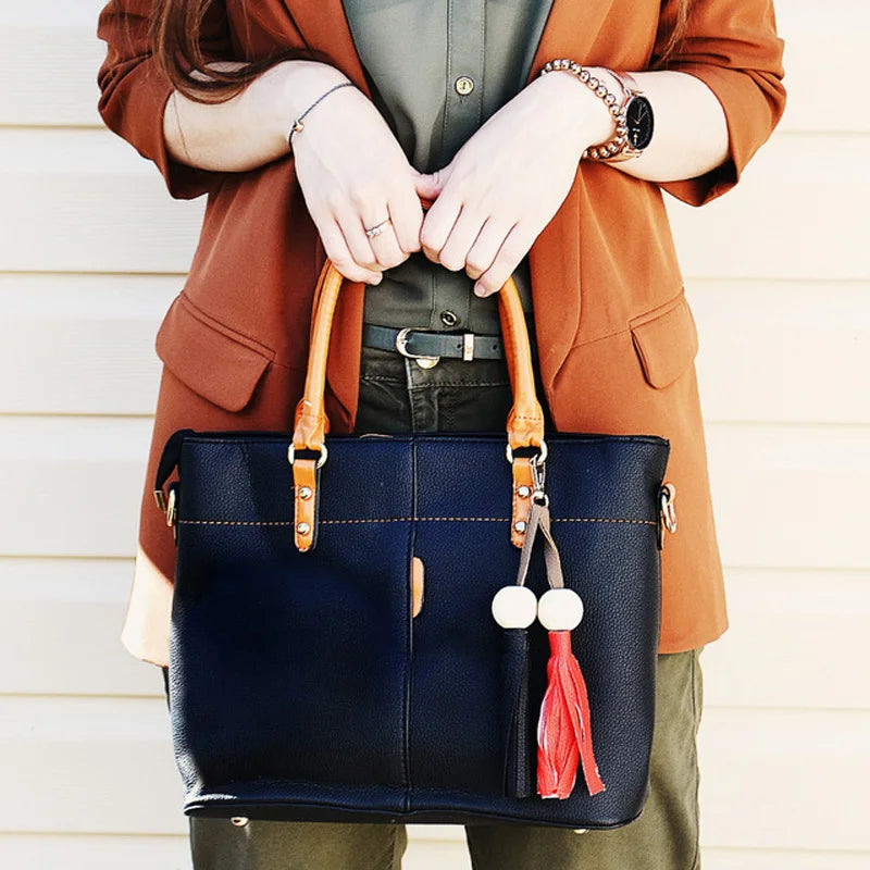 Large Capacity Tassel Tote Bag Soft Leather Handbag Crossbody Messenger Bag