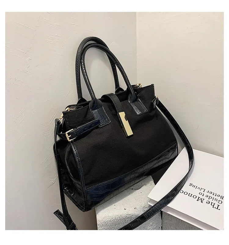 Large Capacity Totes Leather Patchwork Shopper Bag Casual Canvas Women Handbags