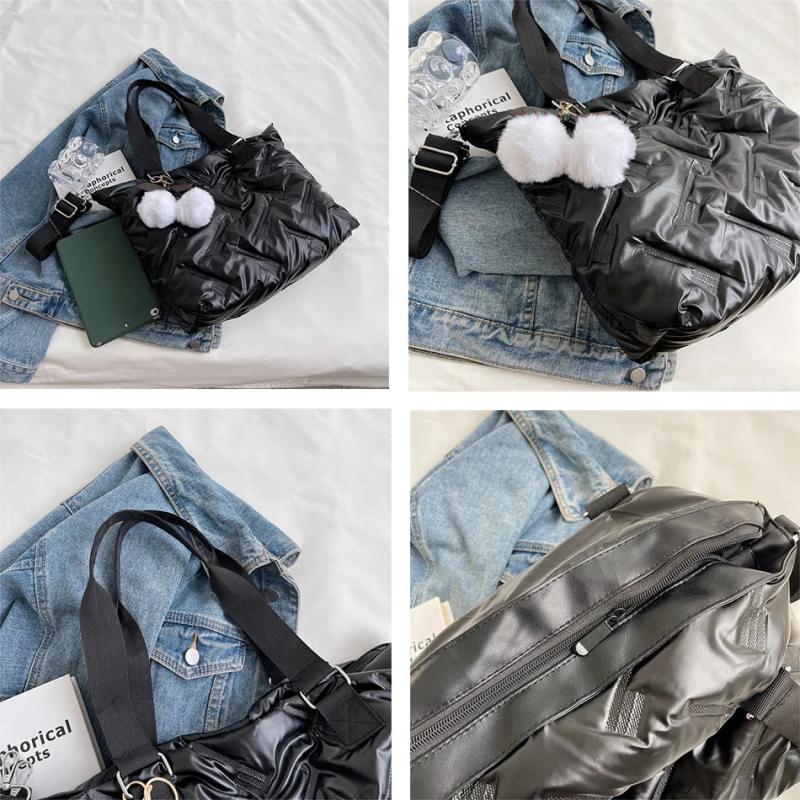 Large Capacity Women Down Fabric Shoulder Crossbody Bags with Hair Ball Purses