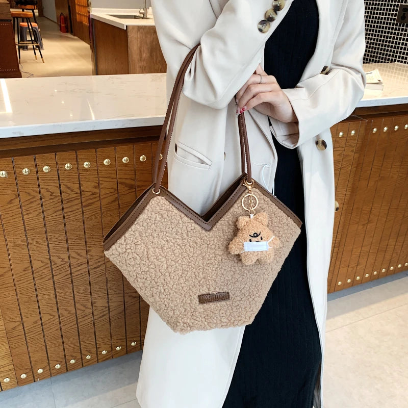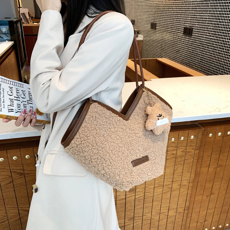 This plush shoulder bag is perfect for the autumn and winter seasons. It is designed with a large capacity for all your essentials.