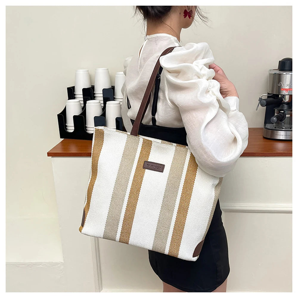 Large-capacity Women Shoulder Bags Vertical Stripes Casual Tote Handbags