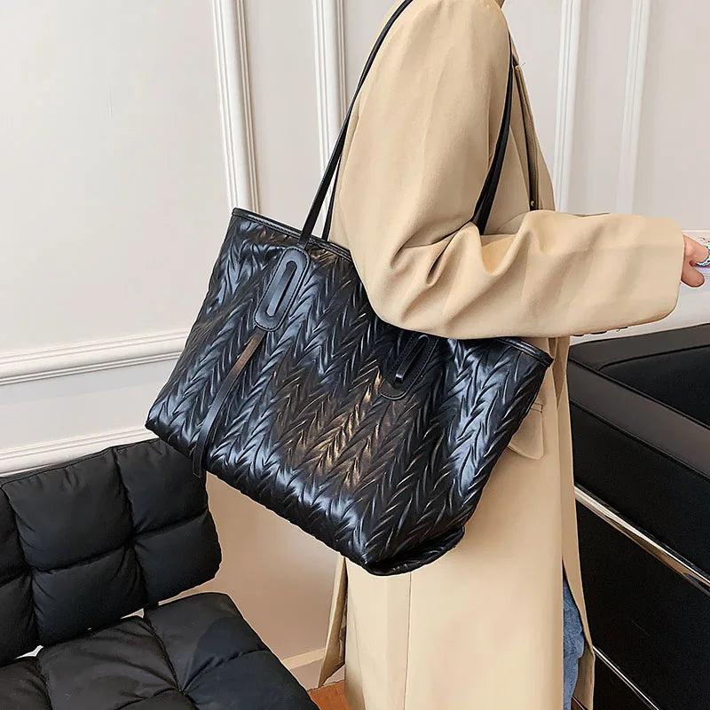 Large Capacity Women Tote Shoulder Bag Solid Square Handbag Shopping Bag