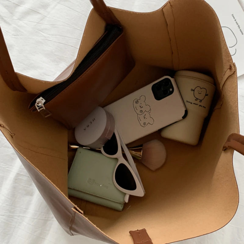 This casual tote bag is perfect for shopping or travel, made of high-quality PU leather with a vintage soft finish.