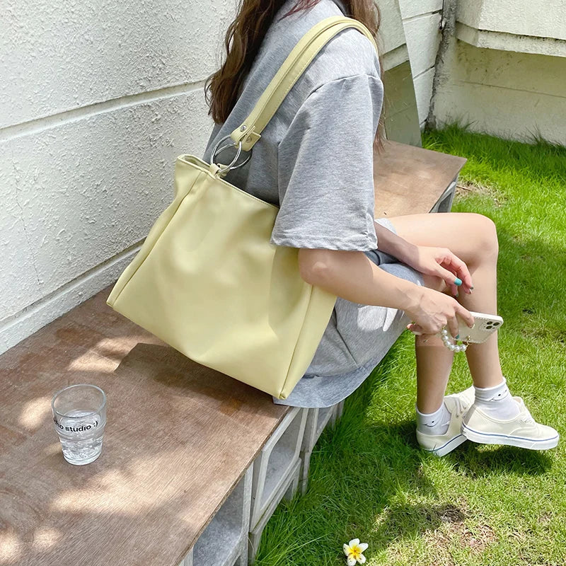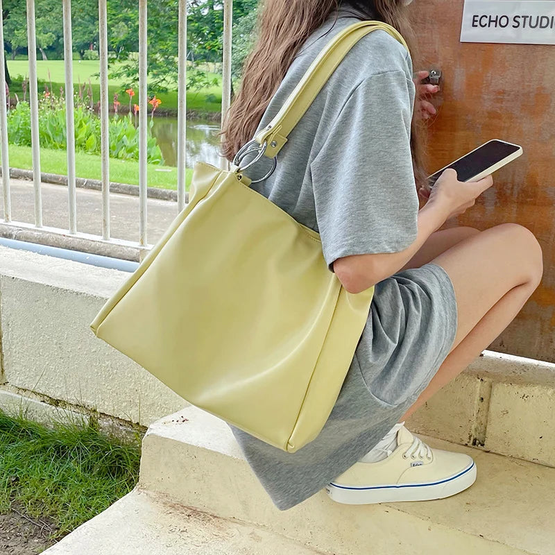 Large Capacity Women Totes Texture All-Match Students Shoulder Bag Solid Casual