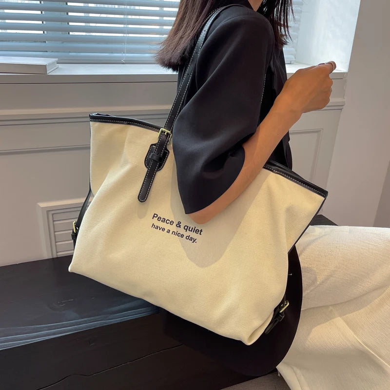 Large Capacity Women's Canvas Tote Bag for Shopping and Shoulder