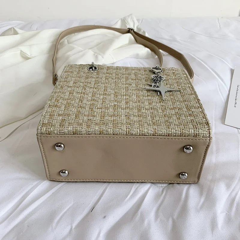 Stay stylish with this trendy woven shoulder bag, perfect for shopping or casual outings. Made of high-quality PU material, it's durable and fashionable.