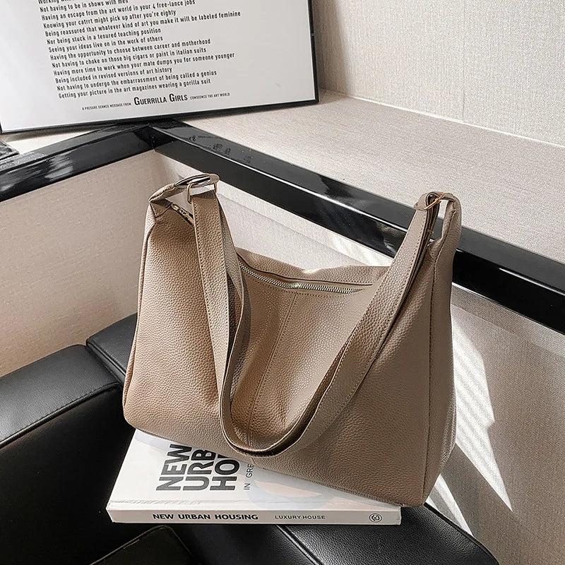 Stay stylish and organized with this soft PU leather tote bag perfect for everyday use. Featuring a spacious interior, it can hold all your essentials with ease.