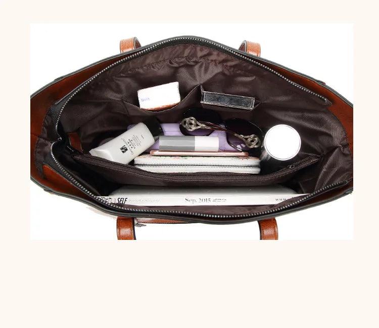 Large Casual Tote Handbag Solid Leather Famous Shoulder Bag for Women