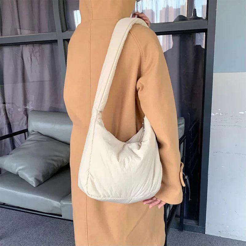 Large Nylon Handbag Quilting Puffy Tote Crossbody Bag Winter Handle Bags