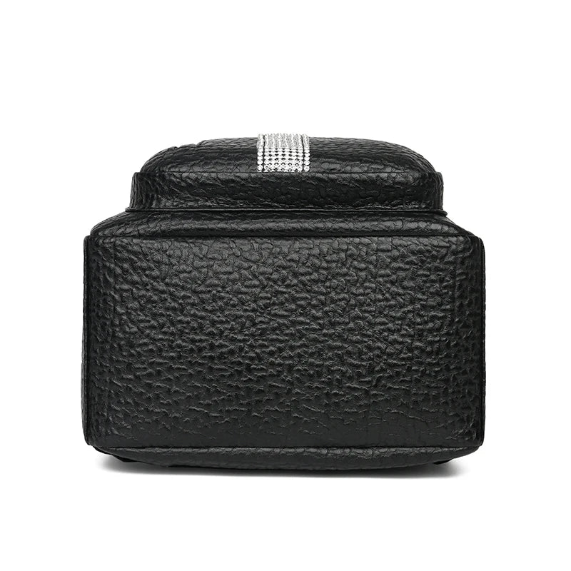 This women's backpack is perfect for travel and school with its spacious design and stylish PU leather material.