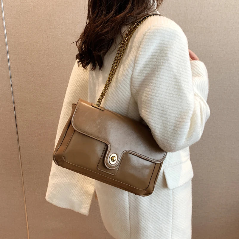 Large PU Leather Shoulder Bag Chains Messenger Handbag Women Ladies