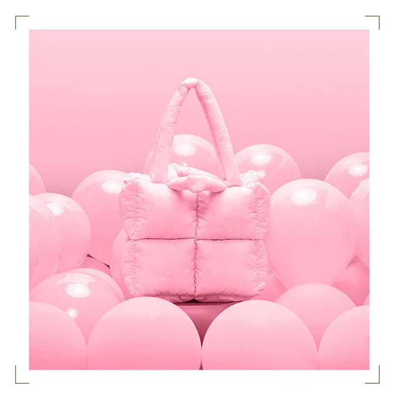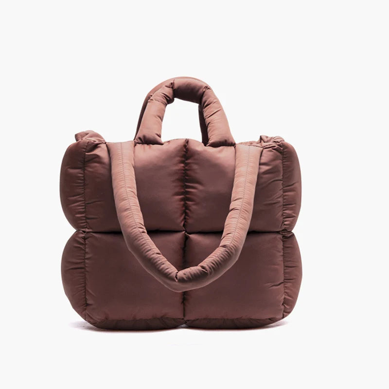 Large Quilted Nylon Tote Handbag Shoulder Bag
