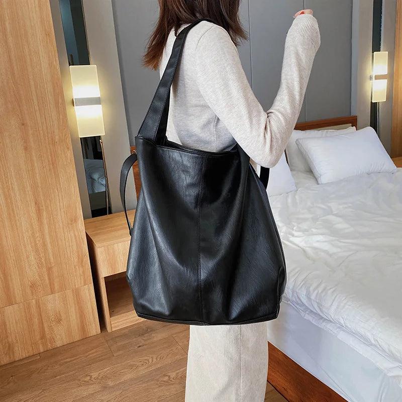 Stay stylish with this retro crossbody bag made of soft leather. It's a large tote handbag suitable for casual outings, designed for ladies who appreciate quality.