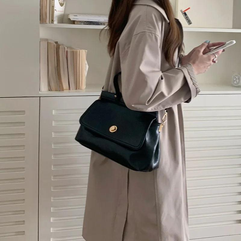 Large Solid Messenger Bag for Women Portable Crossbody Work Briefcase