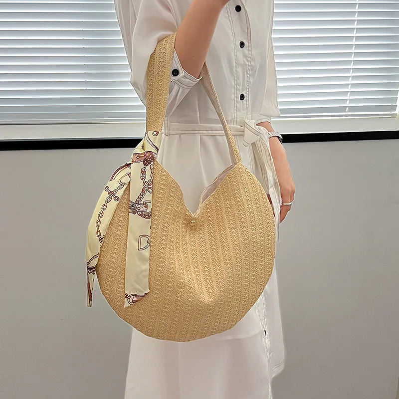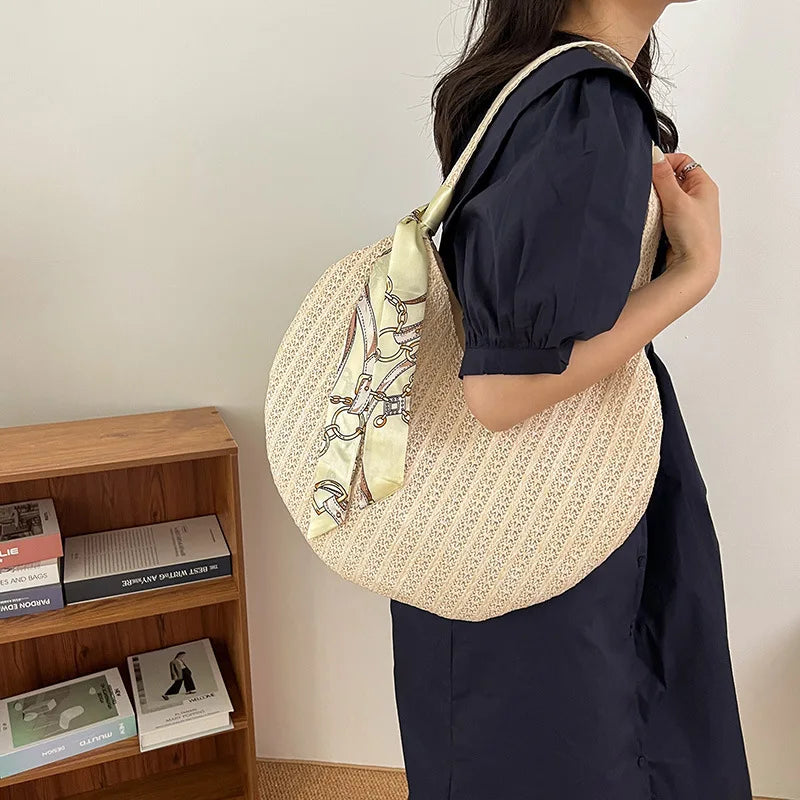 Stay stylish and ready for the beach with this large-capacity straw bag. Perfect for summer, this underarm shoulder bag exudes personality and charm.