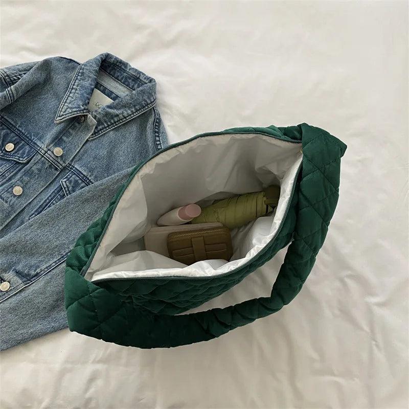 Lattice Pattern Shoulder Bag Space Cotton Handbags Women Large Capacity Tote Bag