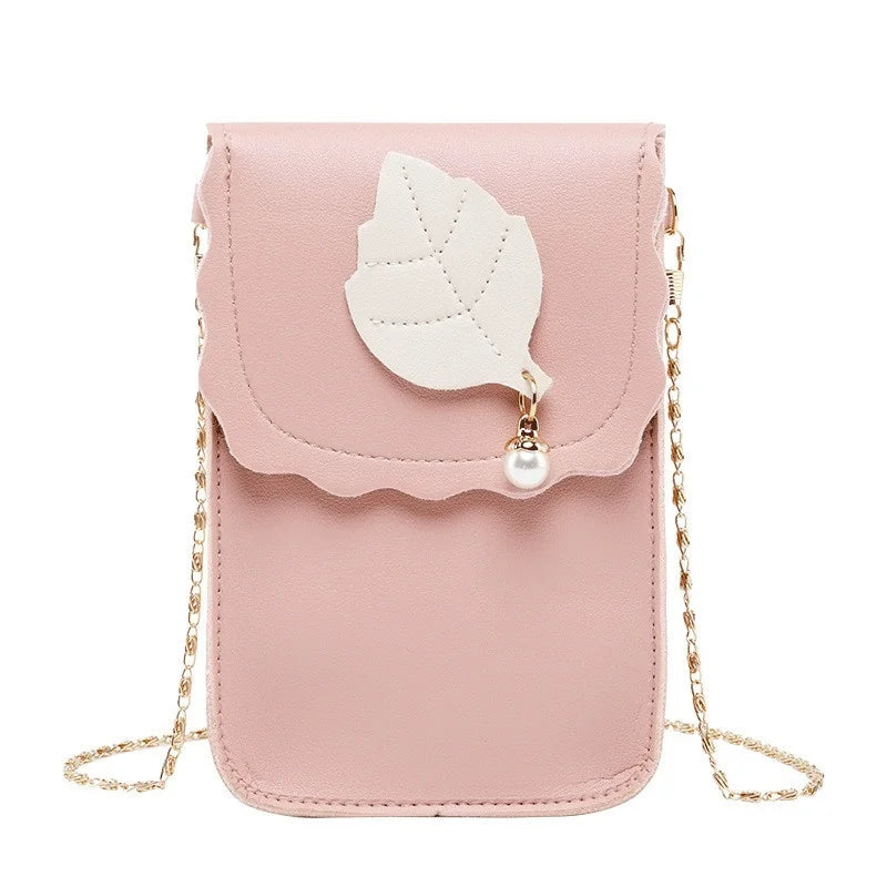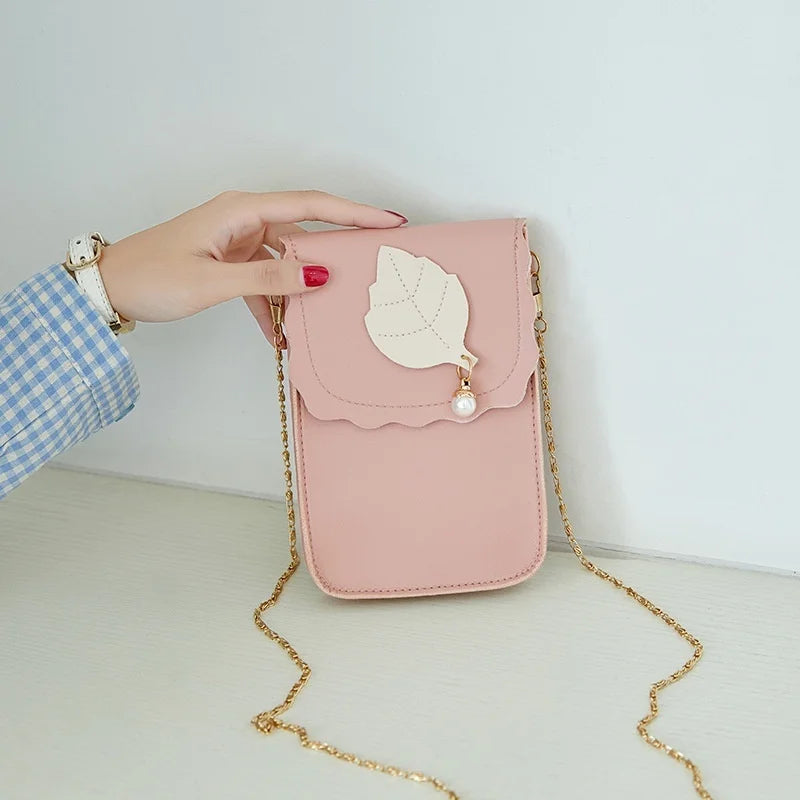 Leaf Mobile Phone Bag College Wind Purse Key Case Messenger Bag PU Shoulder Bag