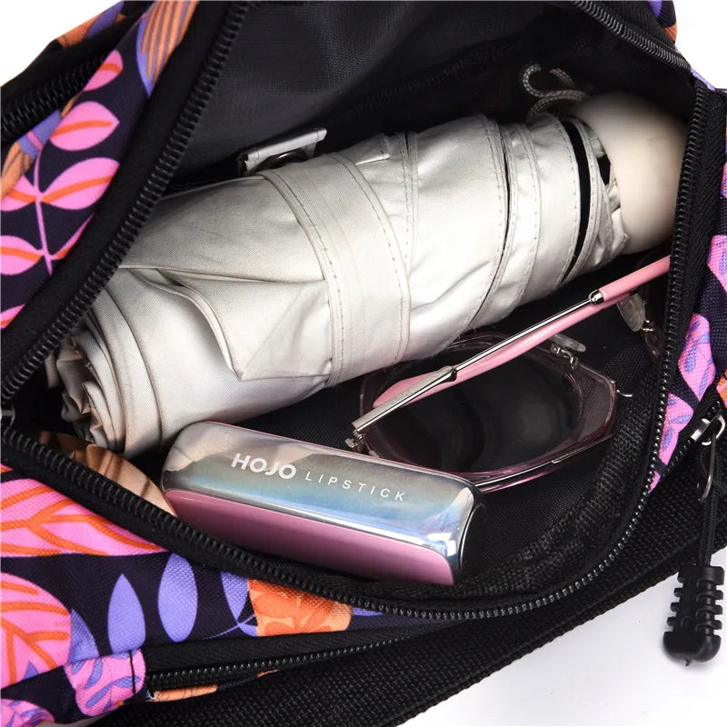 Stay stylish and hands-free with this leaf pattern canvas fanny pack that can be worn as a hip pouch or crossbody. Perfect for travel or casual outings.