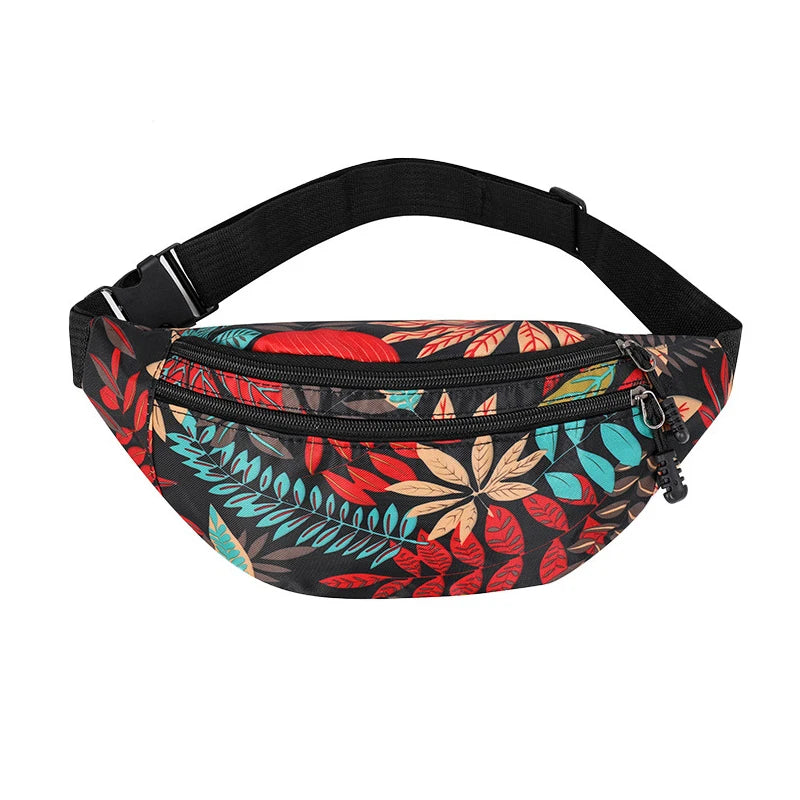 Leaf Printed Waist Bag Large Capacity Fanny Pack Men's Belt Women Casual Canvas