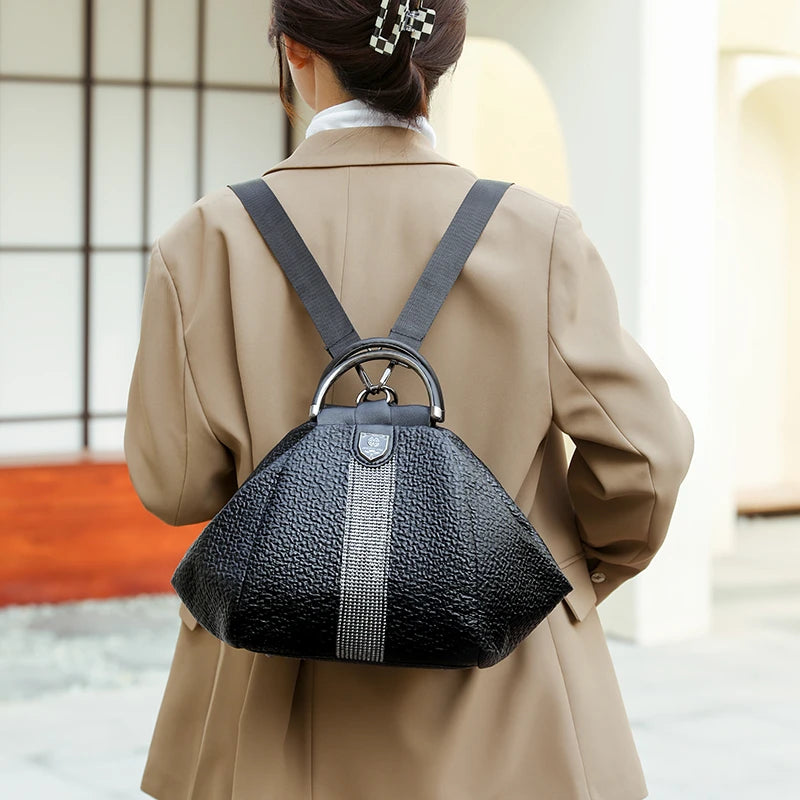 This stylish leather backpack is perfect for women on the go. It features a high-capacity design, making it ideal for travel, school, or everyday use.